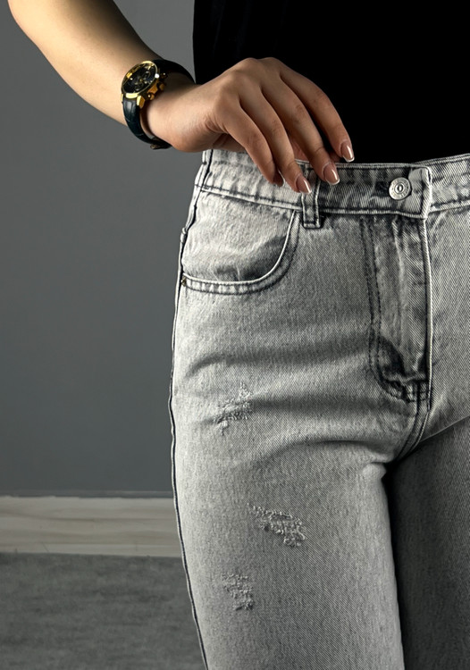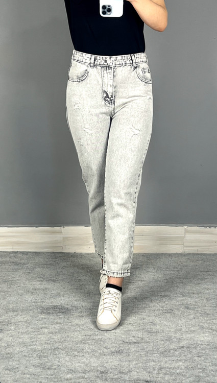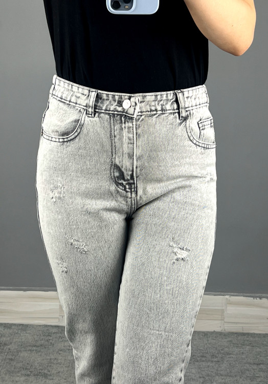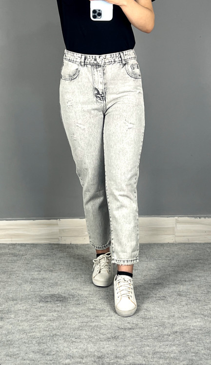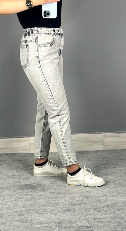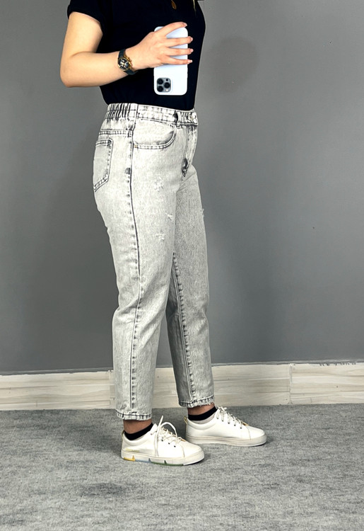 شلوار لی جین زنانه،مدل مام فیت،رنگ طوسی،جنس جین سنگشور،قد۹۰